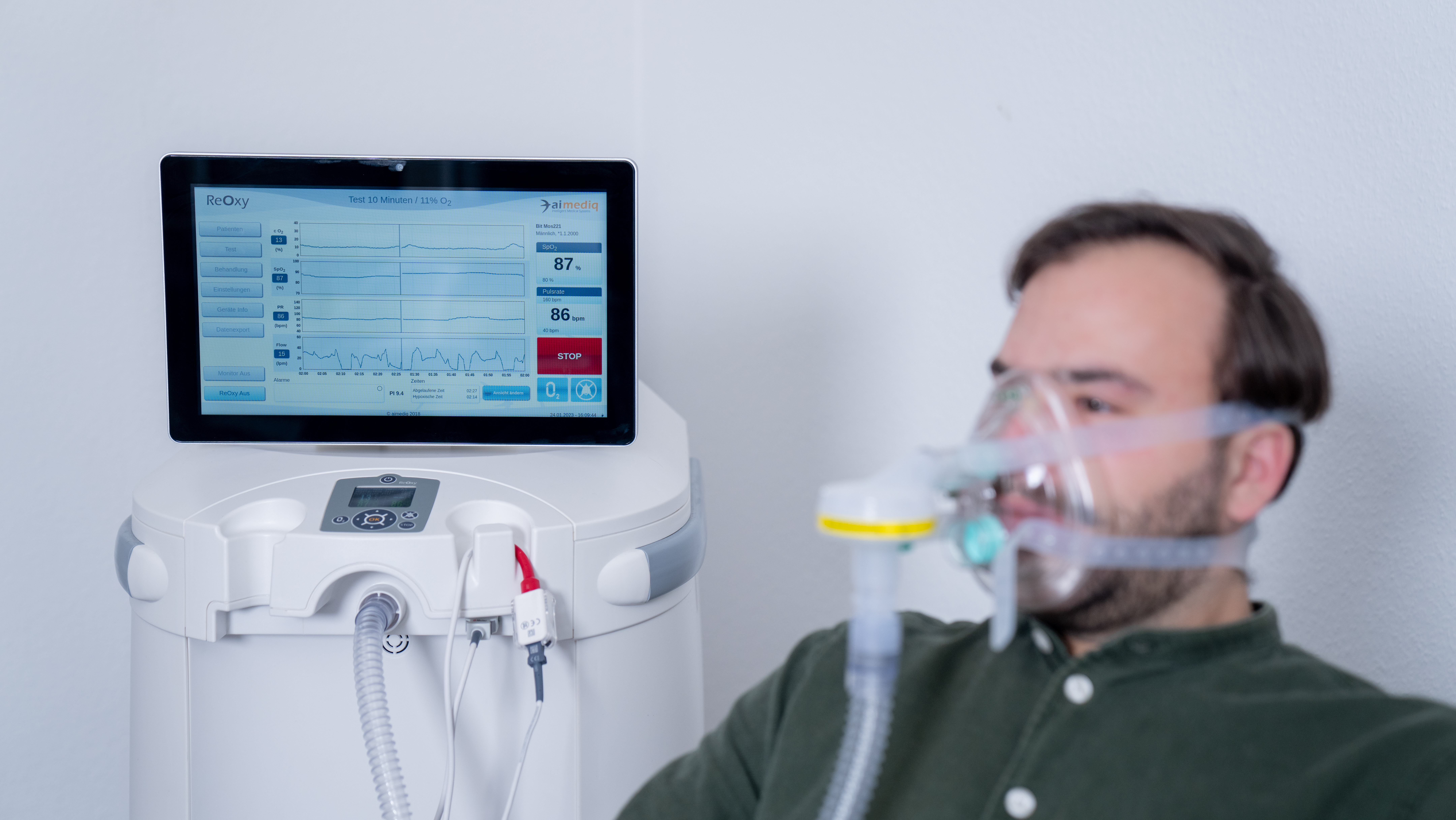 En 2024, AiMediq a lancé le dispositif ReOxy®, une solution innovante qui propose un entraînement personnalisé par hypoxie–hyperoxie intermittente (IHHT®). Cette thérapie unique favorise la réhabilitation médicale, améliore la performance sportive et accompagne un vieillissement actif et en bonne santé