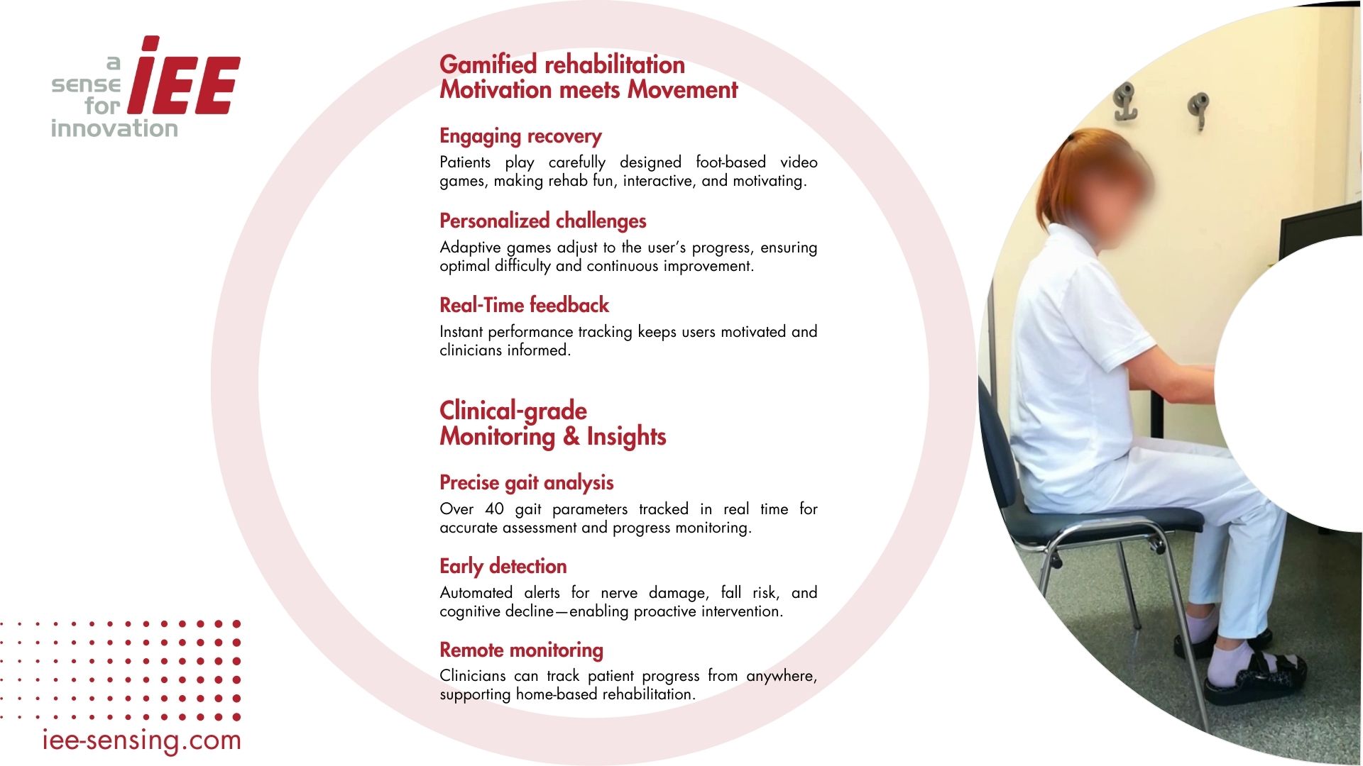 IEE smartHealth répond directement aux besoins d’une population vieillissante et à l’alourdissement du fardeau des maladies chroniques, en offrant des solutions certifiées et évolutives qui maintiennent les personnes mobiles, en bonne santé et hors de l’hôpital. Grâce à son innovation éprouvée et à son engagement envers la qualité, IEE est prêt à collaborer avec les experts médicaux, les prestataires de santé et les gouvernements pour améliorer la santé publique, soutenir la vie indépendante et construire un avenir plus sain pour tous.