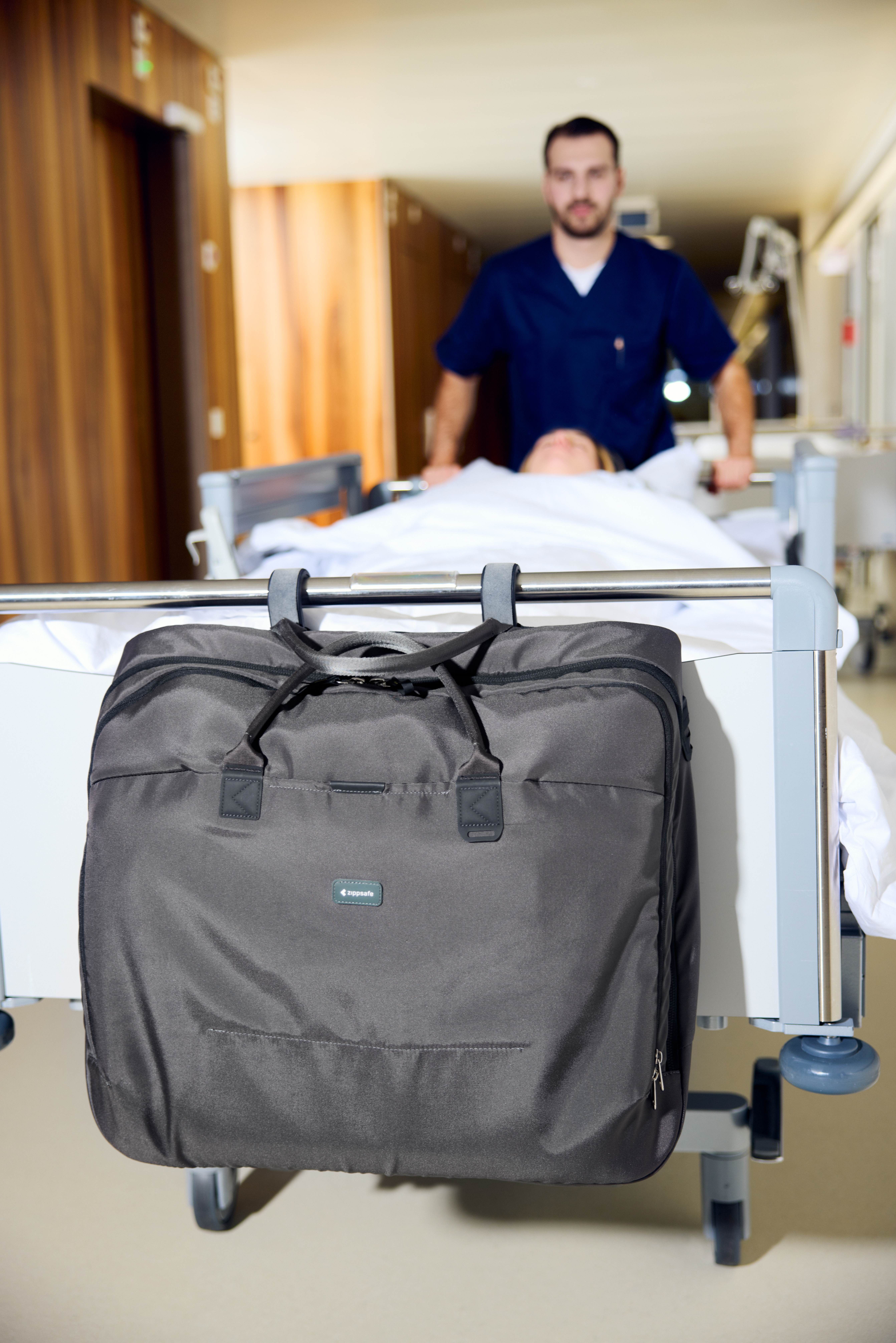 Un autre produit est le ZippBag, un sac spécialement conçu pour une utilisation dans le secteur de la santé. Il permet de ranger de manière hygiénique et sûre les effets personnels des patients. L'application ZippScan associée simplifie et numérise également l'enregistrement des objets de valeur. Cela contribue à améliorer l'efficacité des processus et la sécurité dans l'environnement hospitalier.